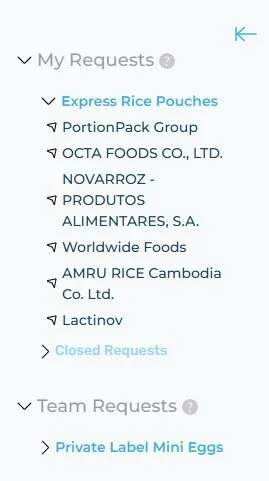 Each request is listed separately. When you click on a request, you’ll see all suppliers you’ve accepted for that specific opportunity.